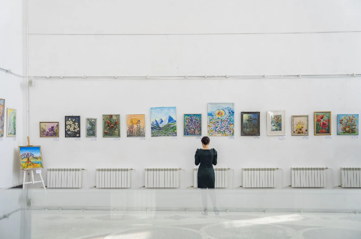 Картины авторов выполнены в техниках сухой пастели, терра-коллажа, фрески и флюид арт.